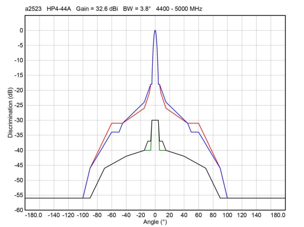 FREQUENCY 4400MHz – 5000MHz VSWR 1 : 1.3 Gain 33 dBi F/B -40 F/S -28